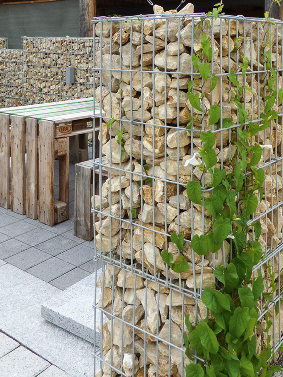 Корпус состоит из точечно-сварной двойной проволочной сетки с размером ячейки видимой поверхности 50 x 200 мм и с оцинковкой согласно DIN EN ISO 1461.